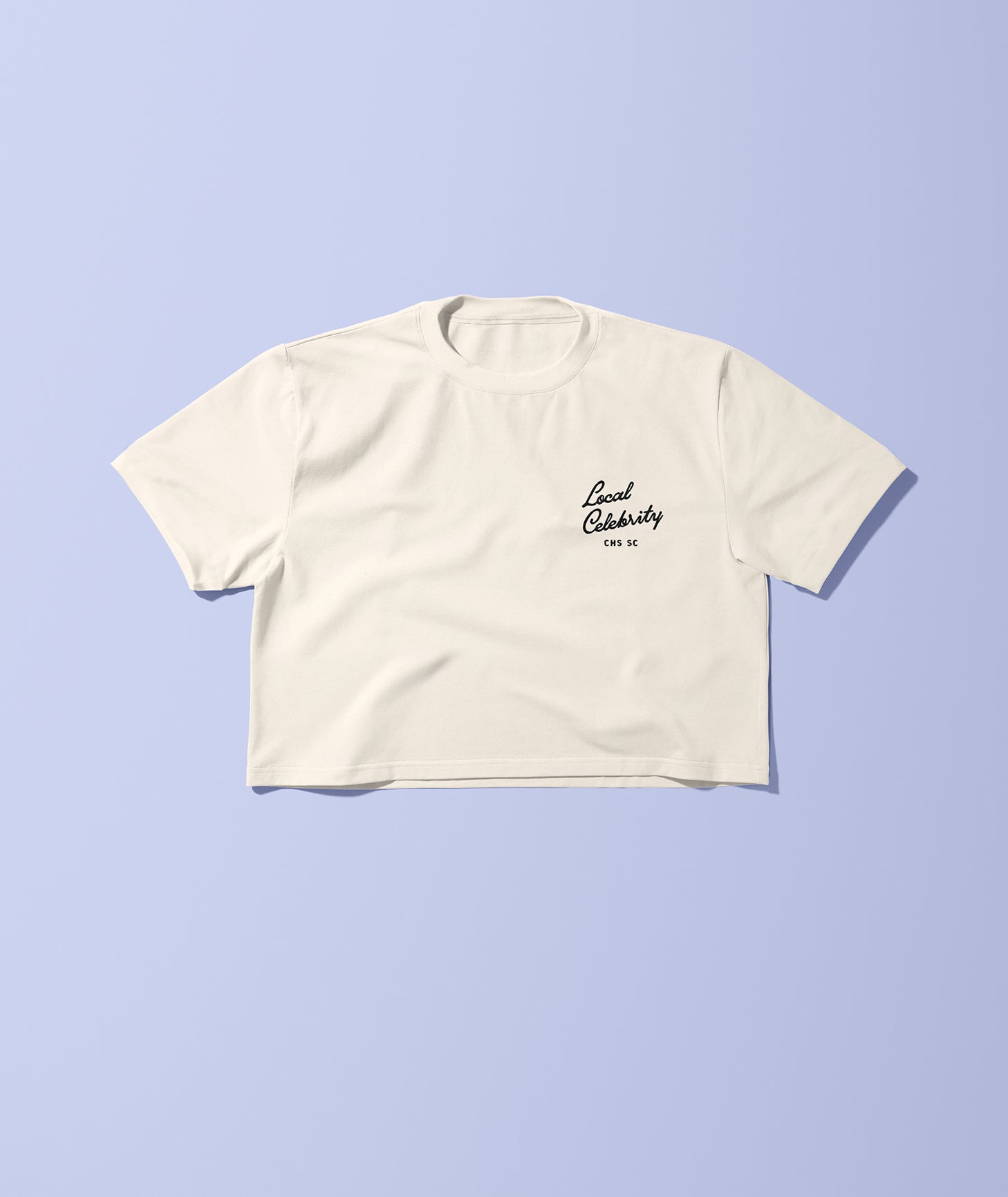 Our Local Celebrity relaxed cropped tee features a ribbed crew neck, pre-shrunk relaxed fit and is crafted from incredibly soft, combed cotton. Embroidered design.